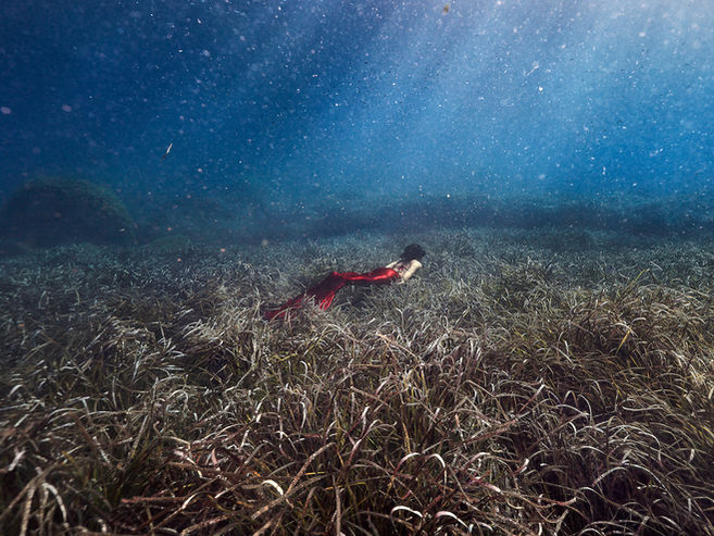 Valeria, the last mermaid of Capo Carbonara (southern Sardinia), teaches human beings not to be afraid of the dark shadow of the Posidonia oceanica meadows, an underwater reserve of oxygen threatened by trawling, acidification of the water and the anchors of boats. In the last 50 years, the meadows have regressed by 34% in the Mediterranean Sea and by 25% along the Italian coasts. Reforestation initiatives are already underway which will allow fish to find refuge again. And for Valeria, not to leave her home.